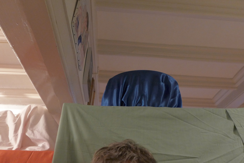 Almost all the people are early. They enter the Vondelparkhuis with a “wow”. Lola wrapped all the furniture and paintings of Tirza’s parents in coloured cloths.