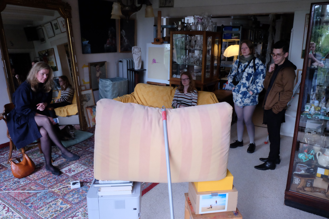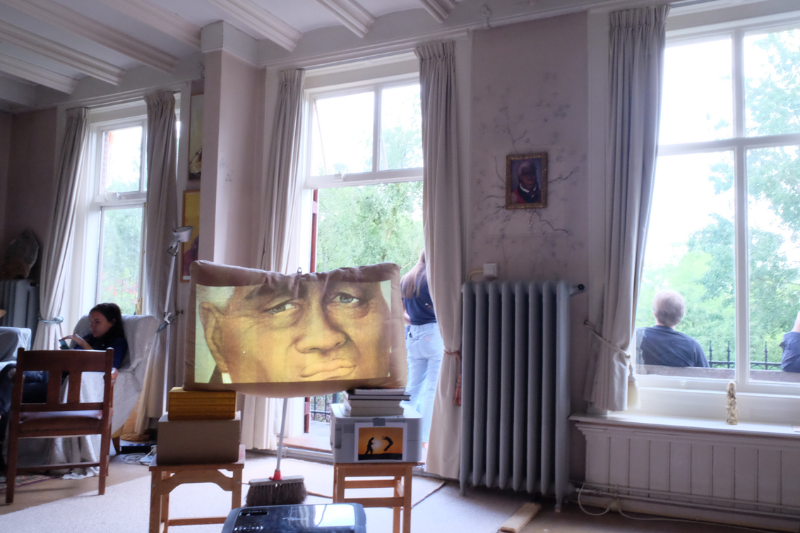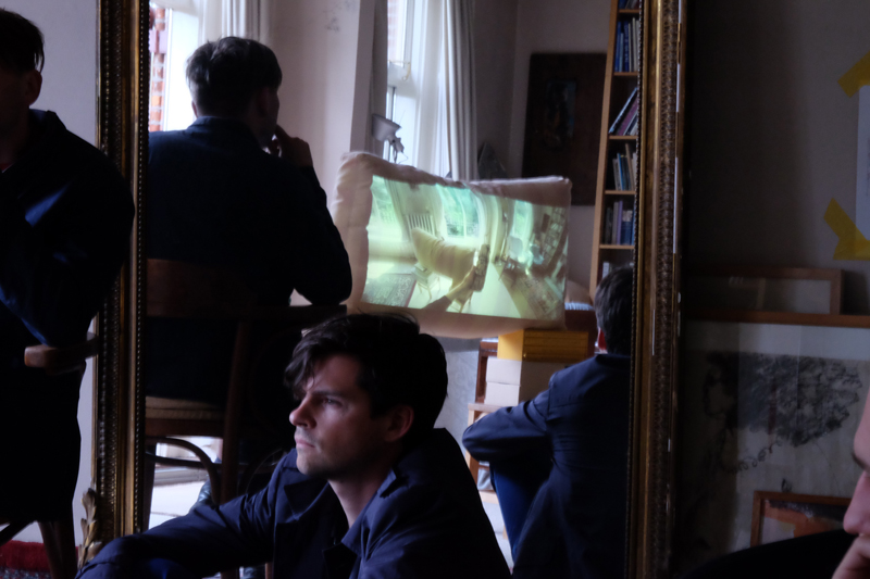 I’m sitting on a yellow couch. Cat Toekie is staring at me from her centrally positioned cushion, and I am looking at a movie projected on another cushion. I overhear resident Jacob Dwyer speaking to host Tirza. "I still try to comprehend what I’ve done really" he says whilst looking at his work.