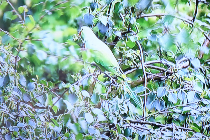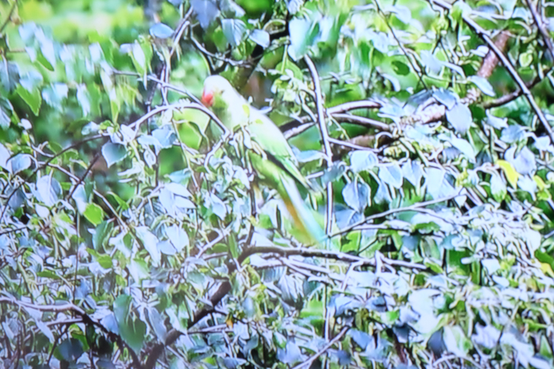 There is another movie shown on the TV of Tirza’s parents. (Which is a movie within a movie since Jacob puts this one in the dvd-player in the other movie). It’s a sequence of Rose-ringed parakeets in trees. A scene which you can see when you look out from the balcony of this house.
