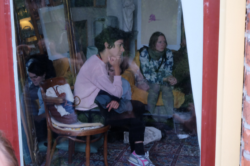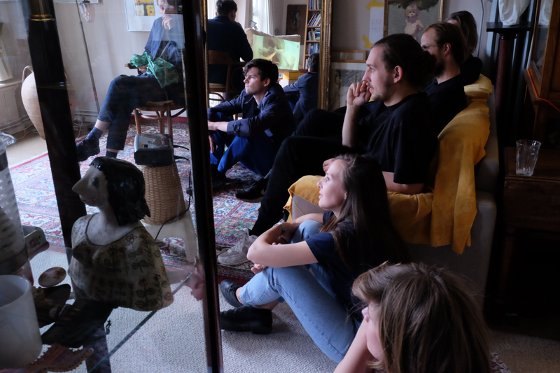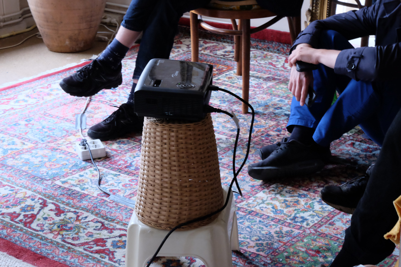 Still every visitor looks at the movies silently. Newly entering people take subtle care of opening the creaking front door. Elki, the photographer of tonight’s documentation, mentions people are so silent because of the low volume of the installation. A tactic of the maker?