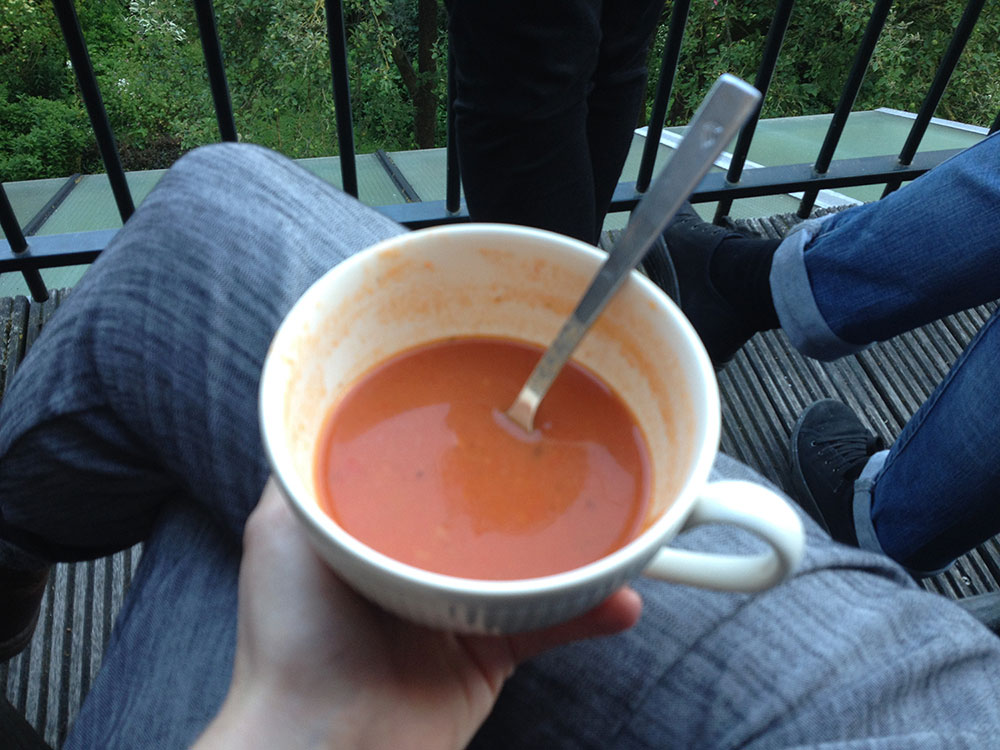 Meanwhile in the Kitchen. Styrmir's girlfriend Agatha invited everyone to eat her paprika soup. "Are you interviewing me?" she asks, looking at my pen and paper. "Tell a good word about it. Tell a hot girl is making hot soup"- while she takes of her sweater next to the steaming pan on the stove that she stirs in. "How many peppers did you put in it?" asks her friend. "Two, I put in two" she replies.